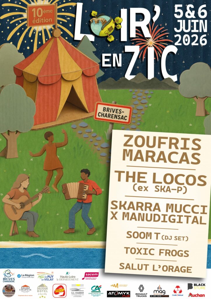 Le festival Loir’en ZIC se tient chaque année en Haute-Loire, à Brives-Charensac. A 5 min du Puy en Velay, au bord de la Loire, un chapiteau et un village éphémère poussent pour vous accueillir pendant ce week-end de folie!